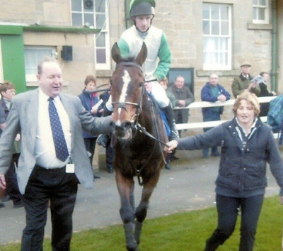 We schooled Super Nomad over fences in the summer of 2001 and he jumped well. It was no surprise to see him win on his fencing debut at Kelso in November, Richie McGrath timing his run perfectly to take the lead in the home straight to score by a narrow margin. However, three weeks later on his second run over fences he took a crashing fall at Market Rasen. It seemed to dent his confidence a little, but he was back in the winner's circle at Newcastle the following February with a resounding win over two miles.