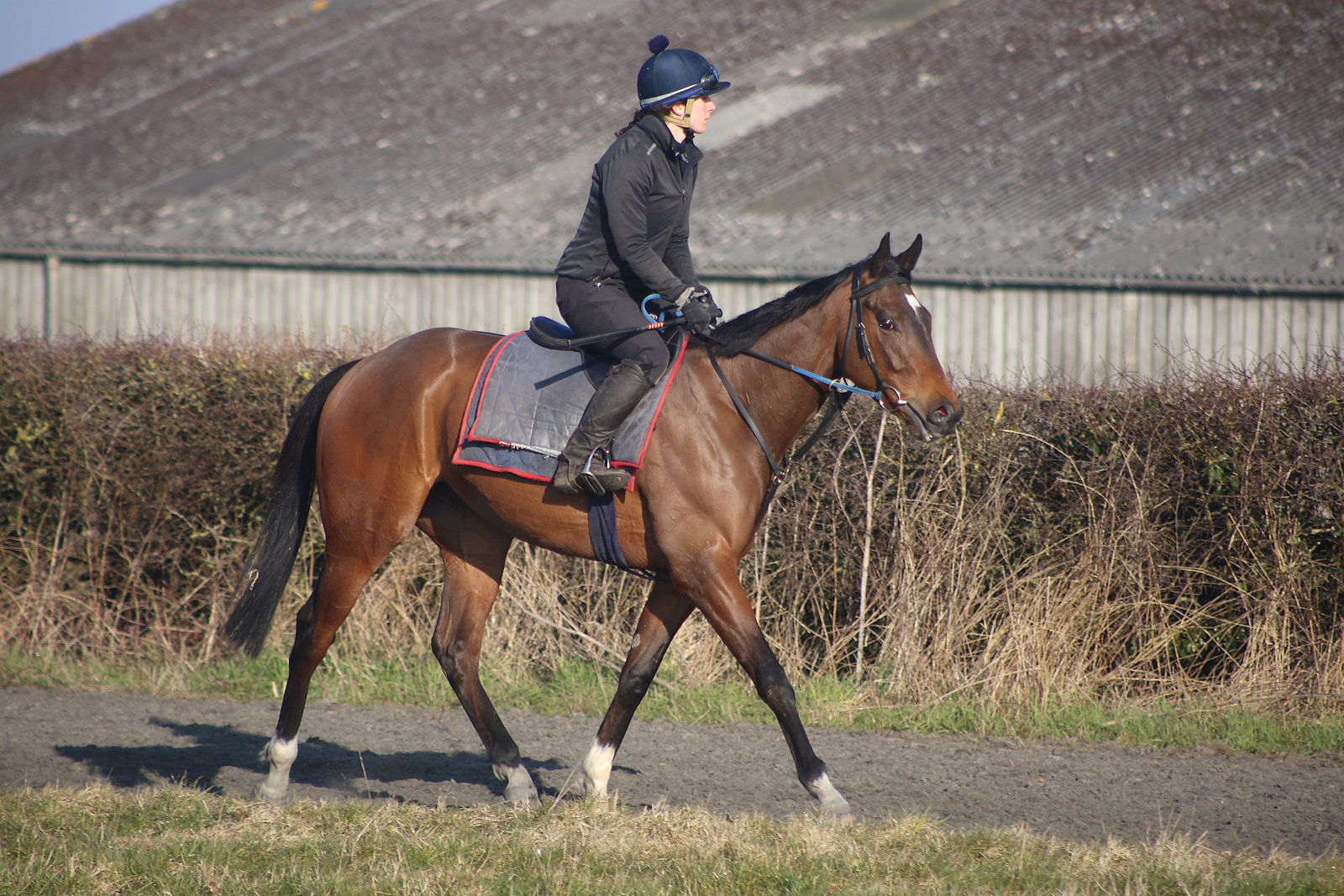 What What What is a bay gelding by Eqtidaar out of Mrakeb, who was placed in the USA. He's a very big horse and beautifully marked, with four white socks. He won for the first time at Newcastle in March 2025 where he was ridden by Billy Garritty. | ||